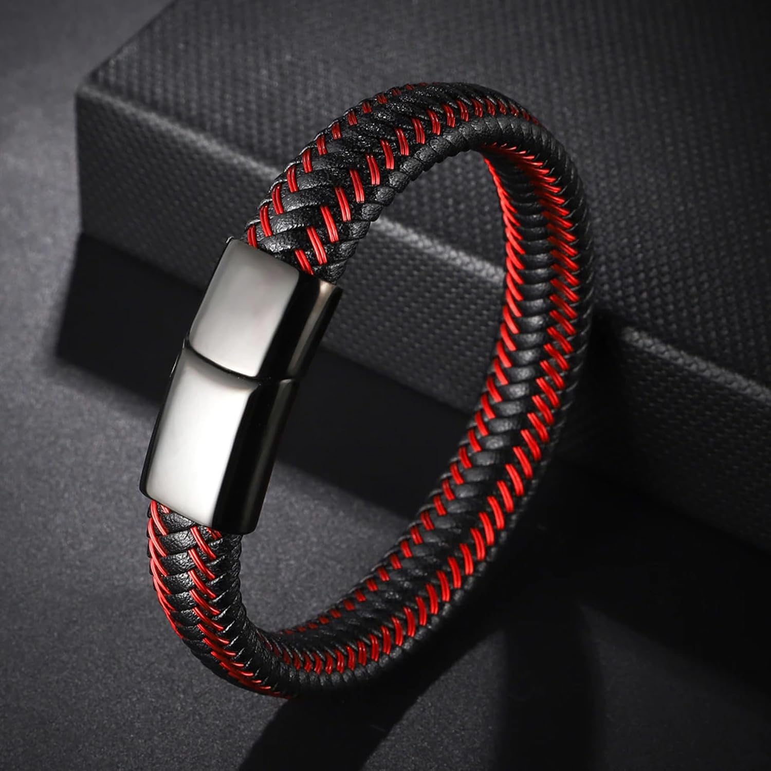High Quality Magnetic Buckle: This has a really unique latch system that is magnetic and is like fitting a puzzle piece together so it holds super strong. This bracelet also has a tight leather weave to enhance the look of it.